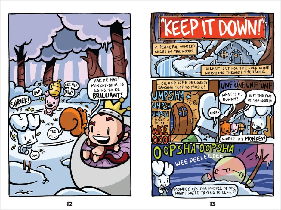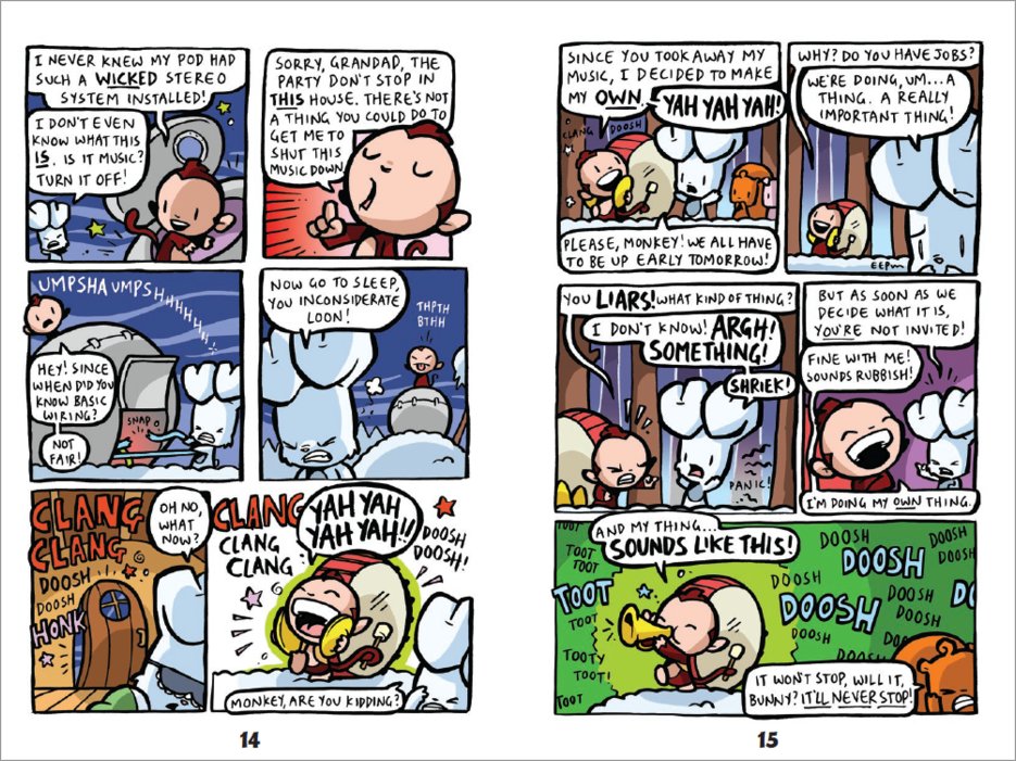 Now Monkey is causing mayhem, Bunny is determined to put a stop to it, and . . . what’s that? It’s an out of control shark tank, ruining a lovely picnic!