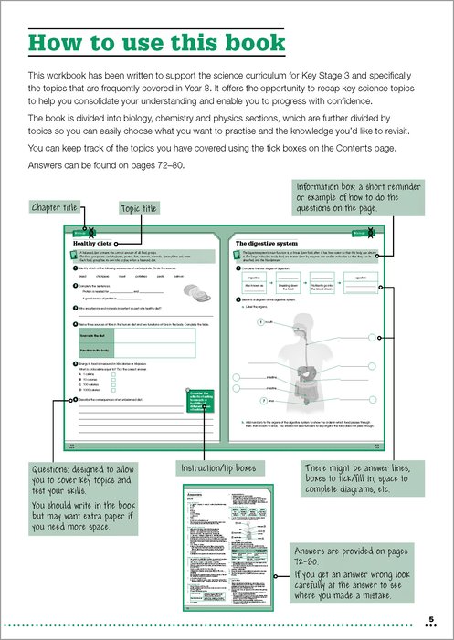This workbook covers science topics in the KS3 National Curriculum for England with full, worked answers contained in the back of the book.