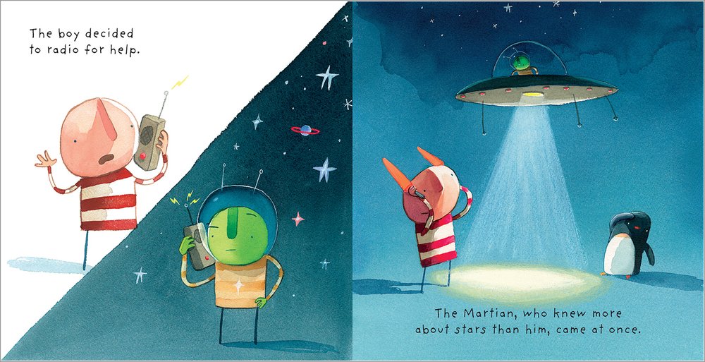 Once there was a boy who would often play hide-and-seek with his friends the star and the penguin. The star was always easy to find, but one day it went missing. So, the boy radioed the Martian for help and soon found himself on an exciting spaceship rescue mission to the North Pole! But there, he discovered that he wasn’t the only one who had always dreamed of having a star as a friend…
