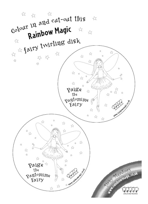 Colour in and cut out this Rainbow Magic twirling fairy disk.