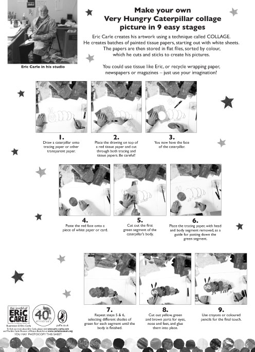 Eric Carle creates his artwork using collage. You can do the same to make your own caterpillar.